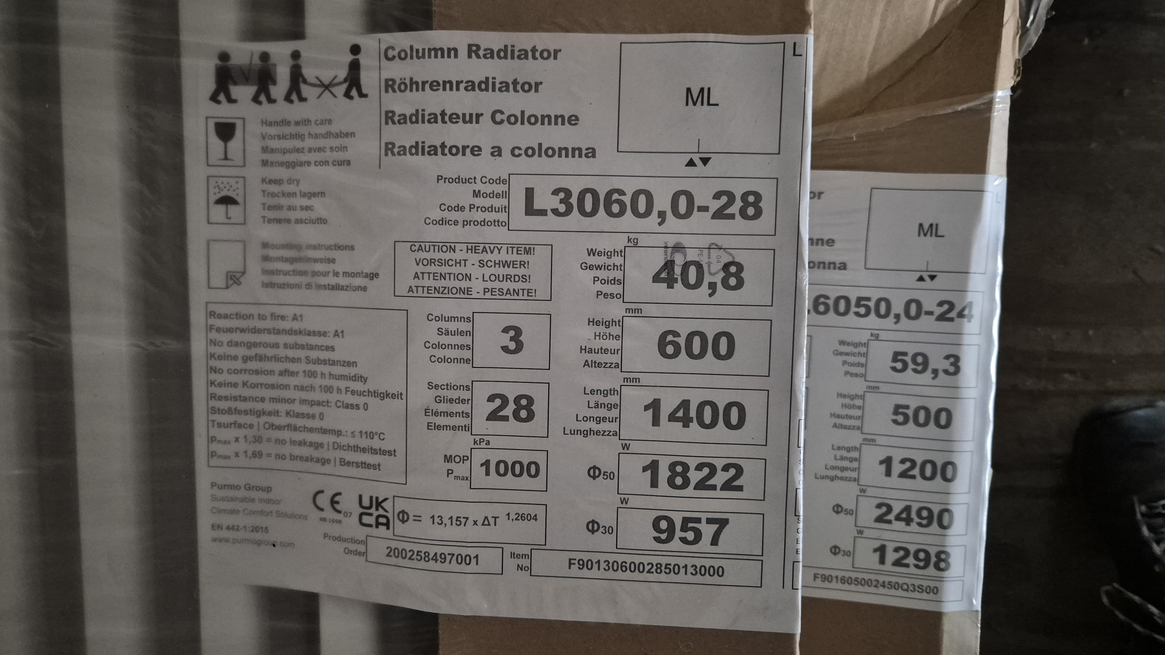 6 elementen (215 dik) Hoog 500 * 1200mm 2492W prijs €400.- 1 op voorraad
